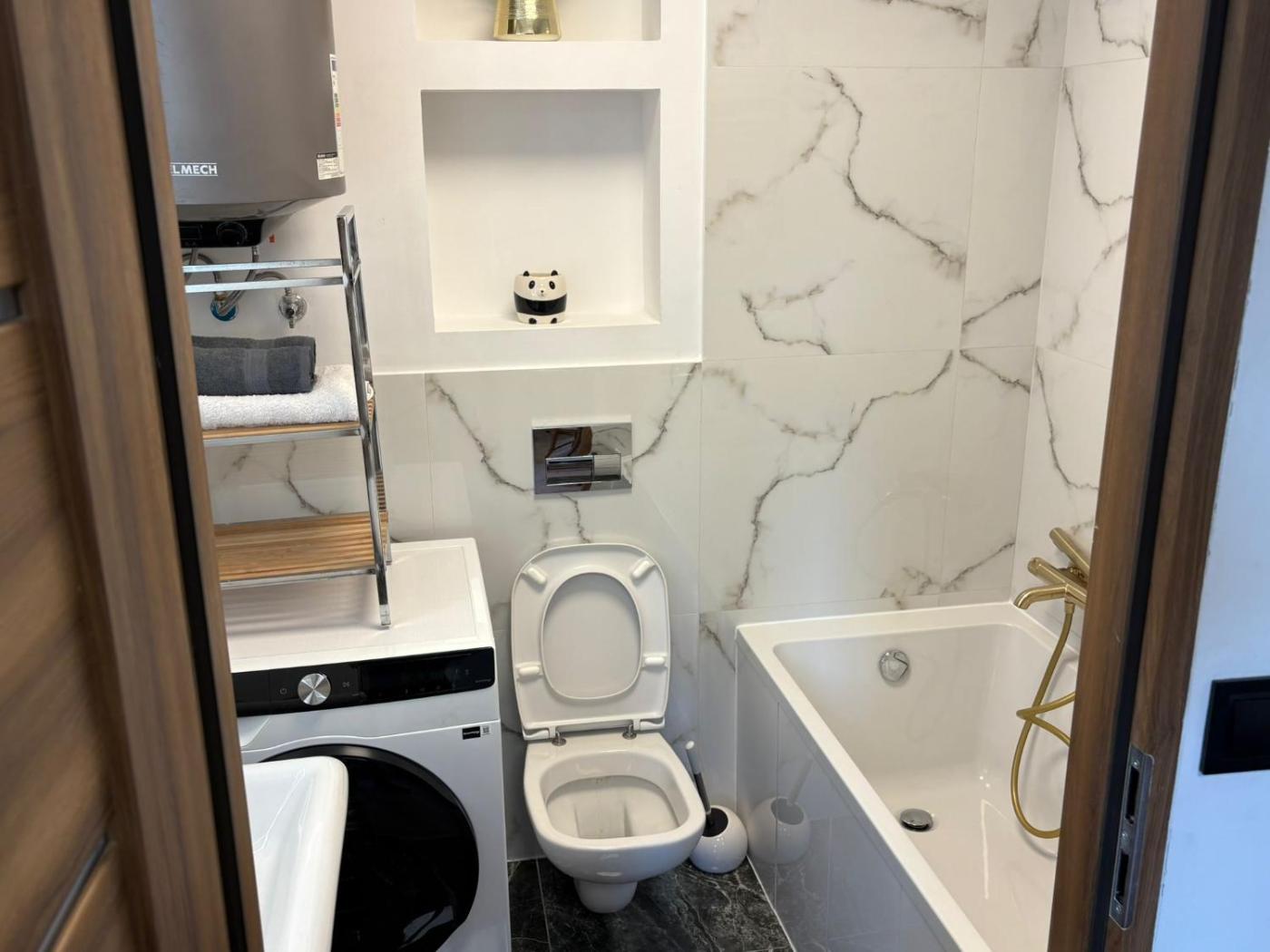 Apartament typu Deluxe z 1 sypialnią. This apartment comes with 1 living room, 1 separate bedroom and 1 bathroom with a bath. Guests can make meals in the kitchen that features a stovetop, a refrigerator, kitchenware and a microwave. The apartment features a washing machine, a tea and coffee maker, a dining area, a flat-screen TV with streaming services, as well as ancourtyard view. The unit has 3 beds. Apartament - 5 osobowy. Powierzchnia pokoju ok.: 38 mkw.